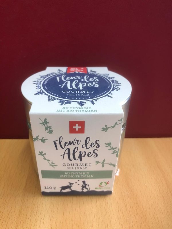 Fleur des Alpes gourmet au THYM BIO – 110 grCHF11.00 - quantité de Fleur des Alpes gourmet au THYM BIO - 110 gr + Ajouter au panier Catégorie : Sel Description Description
