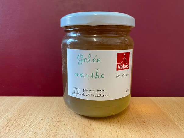 Gelée Menthe (100% valaisan) – 230 grCHF5.00 - quantité de Gelée Menthe (100% valaisan) - 230 gr + Ajouter au panier Catégorie : 100%valaisan Description Description Produits apparentés Gelée Génépi (100% valaisan) – 230 gr CHF5.00 Ajouter au panier Gelée Ortie (100% valaisan) – 230 gr CHF5.00 Ajouter au panier Gelée Piment (100% valaisan) – 70 gr CHF2.95 Ajouter au panier Gelée sauge (100% valaisan) – 230 gr CHF5.00 Ajouter au panier