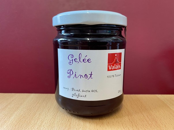 Gelée Pinot (100% valaisan) – 230 grCHF5.00 - quantité de Gelée Pinot (100% valaisan) - 230 gr + Ajouter au panier Catégorie : 100%valaisan Description Description Produits apparentés Gelée Génépi (100% valaisan) – 230 gr CHF5.00 Ajouter au panier Gelée sauge (100% valaisan) – 230 gr CHF5.00 Ajouter au panier Confiture Poire/Pinot (100% valaisan) – 230 gr CHF5.00 Ajouter au panier Gelée Groseille (100% valaisan) – 70 gr CHF2.95 Ajouter au panier