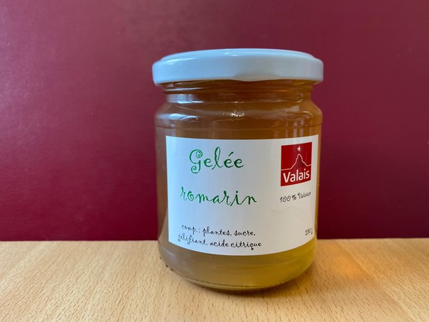 Gelée romarin (100% valaisan) – 230 grCHF5.00 - quantité de Gelée romarin (100% valaisan) - 230 gr + Ajouter au panier Catégorie : 100%valaisan Description Description Produits apparentés Gelée Mûre (100% valaisan) – 70 gr CHF2.95 Ajouter au panier Gelée Edelweiss (100% valaisan) – 70 gr CHF2.95 Ajouter au panier Gelée sauge (100% valaisan) – 230 gr CHF5.00 Ajouter au panier Gelée Fleur de sureau (100% valaisan) – 230 gr CHF5.00 Ajouter au panier