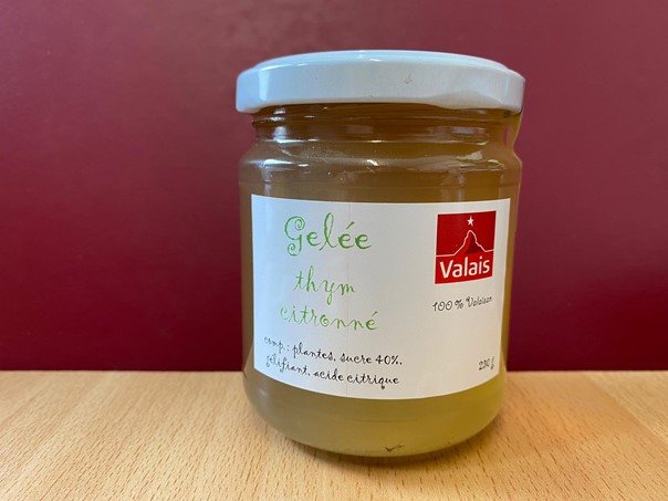 Gelée Thym citronné (100% valaisan) – 230 grCHF5.00 - quantité de Gelée Thym citronné (100% valaisan) - 230 gr + Ajouter au panier Catégorie : 100%valaisan Description Description Produits apparentés Gelée Fleur de sureau (100% valaisan) – 230 gr CHF5.00 Ajouter au panier Gelée Cerise (100% valaisan) – 70 gr CHF2.95 Ajouter au panier Gelée sauge (100% valaisan) – 230 gr CHF5.00 Ajouter au panier Gelée Verveine (100% valaisan) – 230 gr CHF5.00 Ajouter au panier