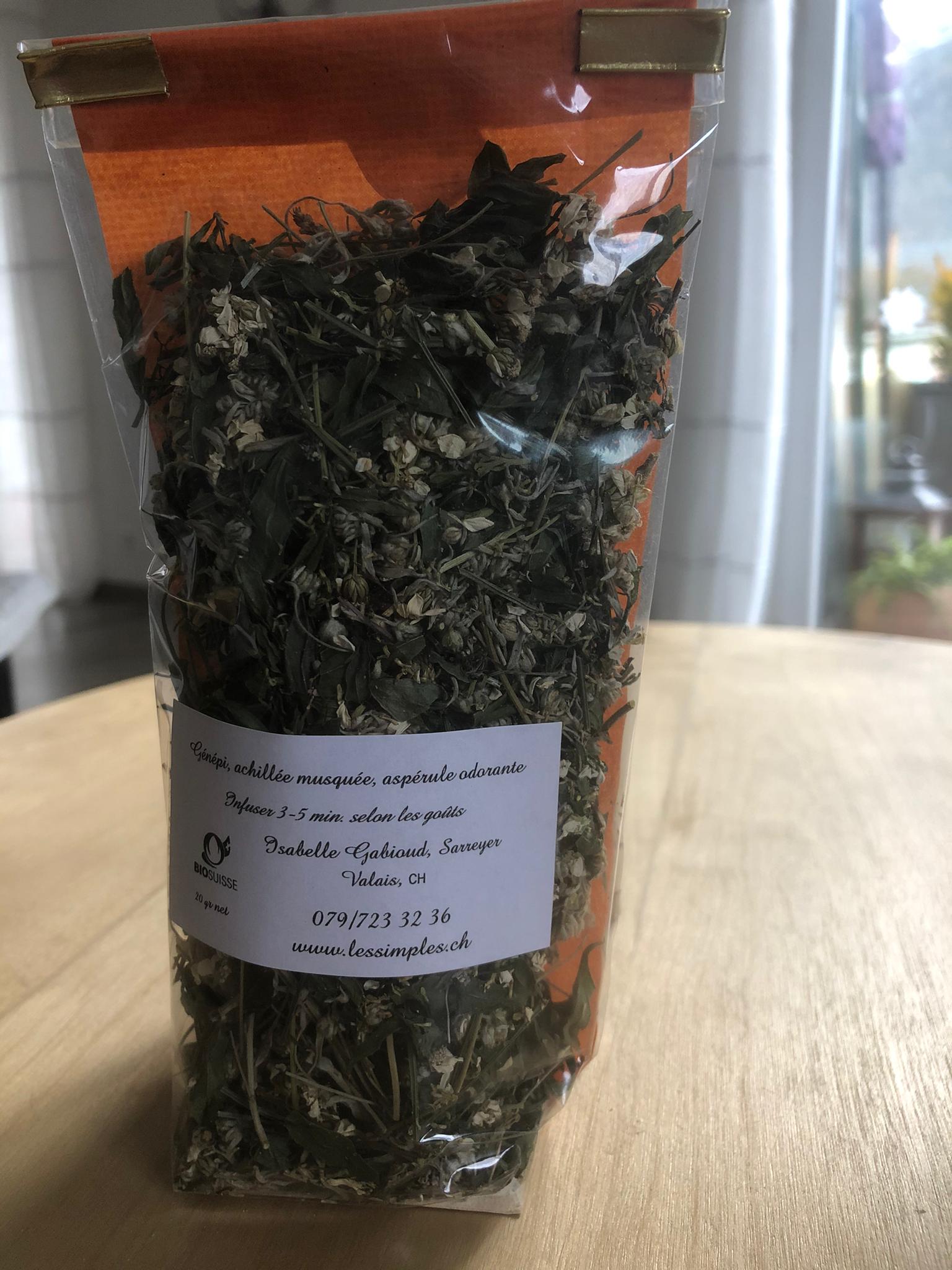 Infusion Harmonie au Génépi – 20g (les Simples)CHF8.50 En stock - quantité de Infusion Harmonie au Génépi - 20g (les Simples) + Ajouter au panier Catégories : BIO, Thés-Infusions Description Description Produits apparentés Farine de seigle (semi-complète) 600 Bio – 1 kg CHF5.30 Ajouter au panier Alp Tea Classic – 1L CHF2.20 Ajouter au panier Champignons de Paris blancs – 250 gr CHF3.50 Ajouter au panier Infusion Thym-Citron – 20g (les Simples) CHF8.50 Ajouter au panier