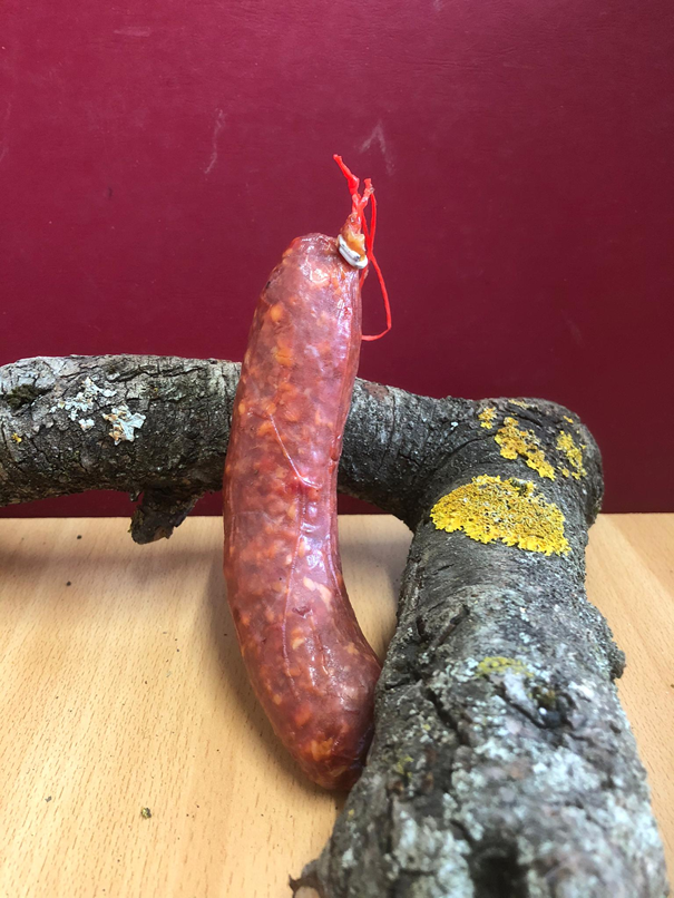 Ingrédients: sel nitrite, Dextrose, Ascorbate de sodium E301, Piment doux, Piment piquant, Fenouil, Boyau de boeuf.